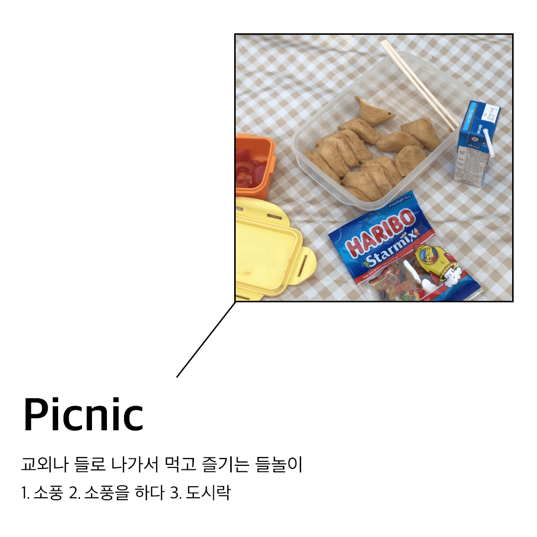 어른이 되고서 자주 쓰지 않는 듯한 단어 중 제가 가장 아끼는 단어가 있다면 ‘소풍’이라고 말할 수 있을 것 같아요. 사실 ‘피크닉’이 생소하게 느껴지는 분들도 ‘소풍’이라는 단어로 바꾸어 말하면 금세 ‘아~’ 하고 추억에 젖곤 하죠. 누구든 어린 시절에 소풍을 가서 김밥을 먹어본 기억이 한 번쯤은 있으니까요.
