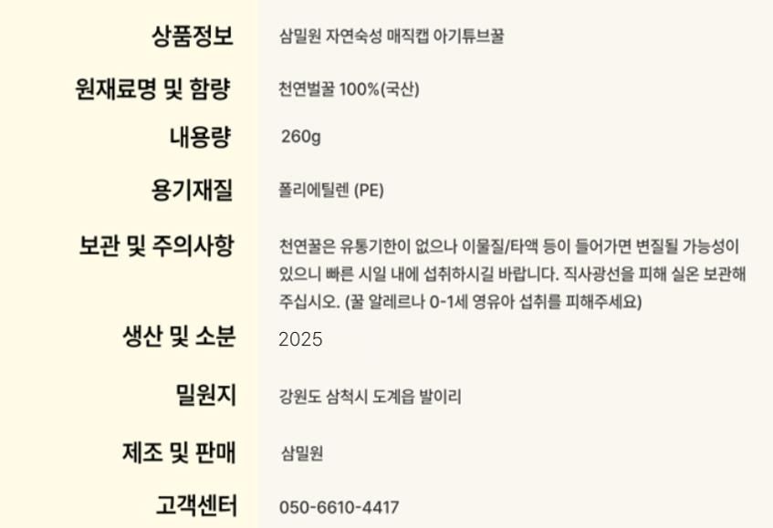 자연숙성 아기튜브꿀 260g