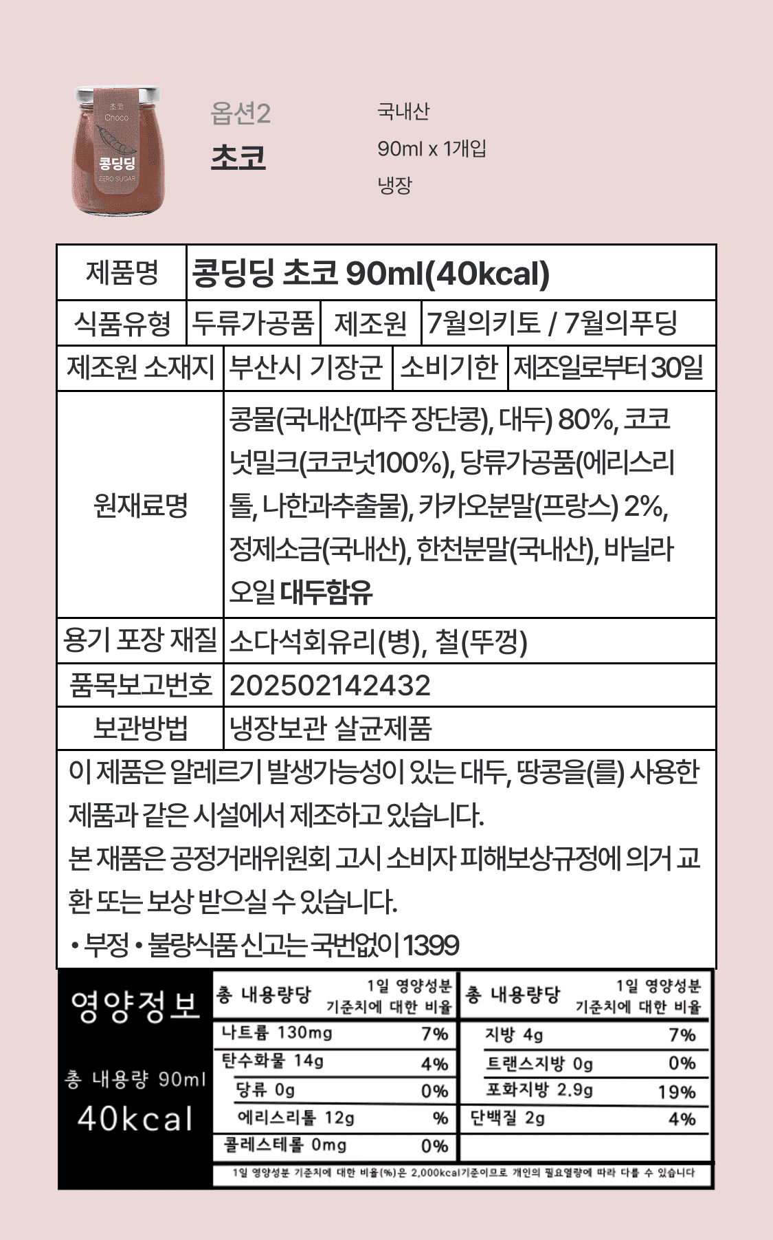 파주 장단콩으로 만든 무설탕 비건푸딩