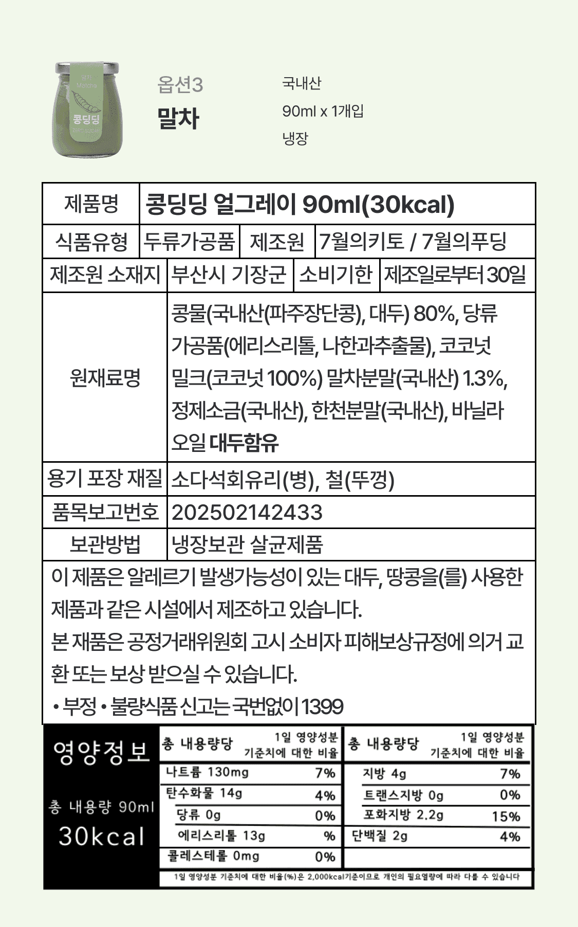 비건푸딩 6종 (콩/초코/말차 외 3종)