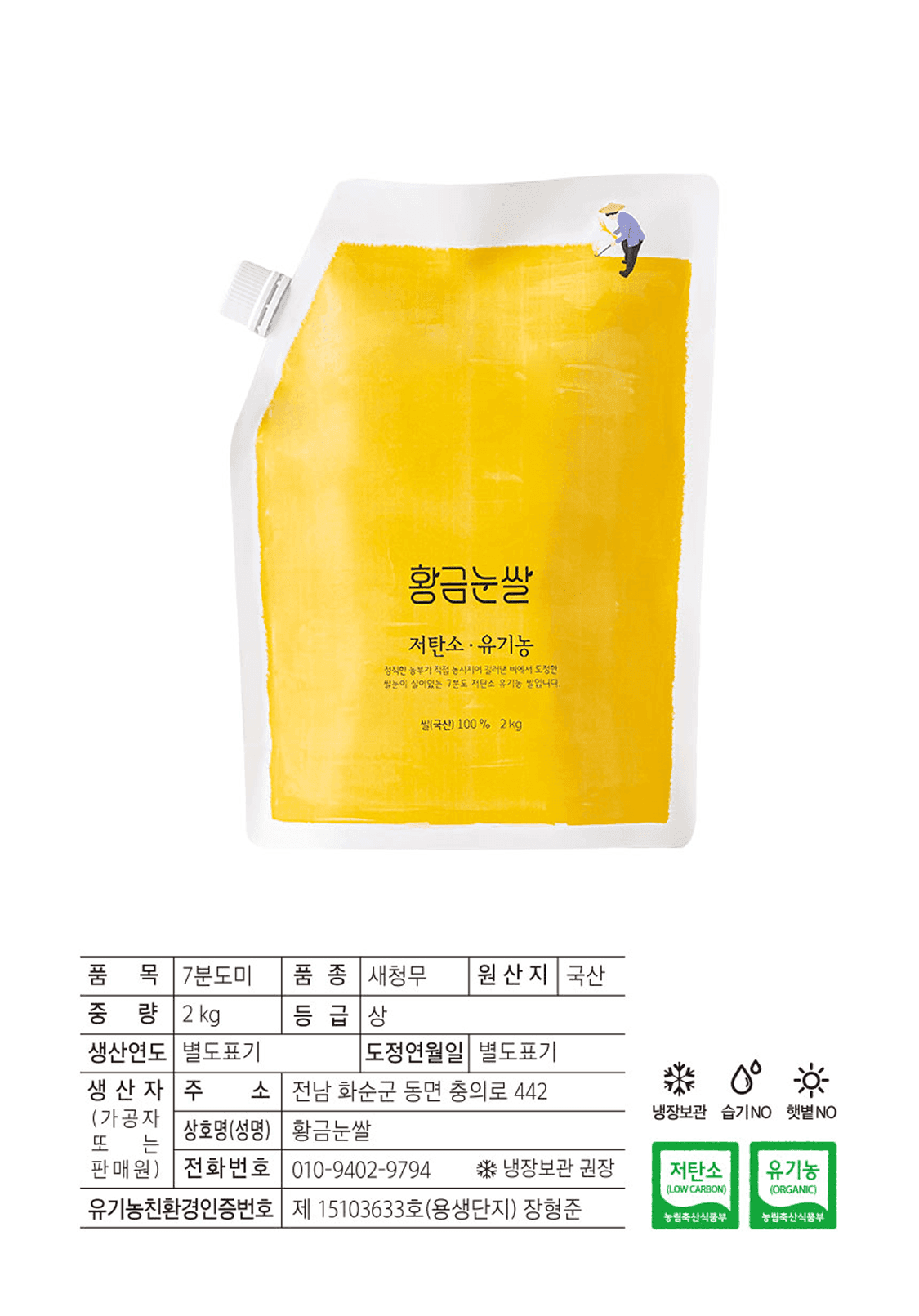 유기농 노랑이쌀 2kg