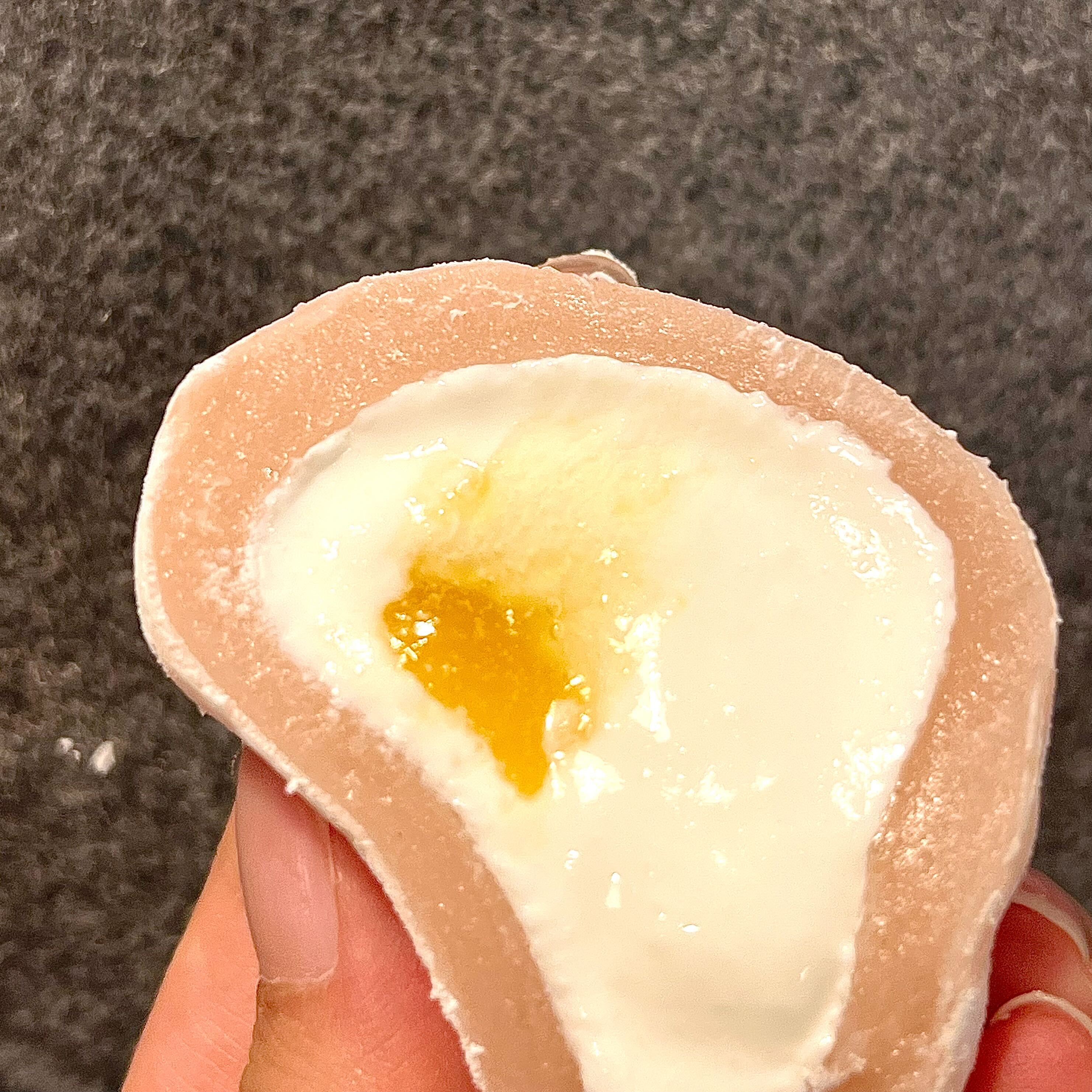 겁나 맛잇음 먹으면서 느낀건 찹쌀떡 아이스크림 같아서 더 맛있음, 안에 복숭아 잼(?) 같은게 쥬루륵 나온게 미폇음