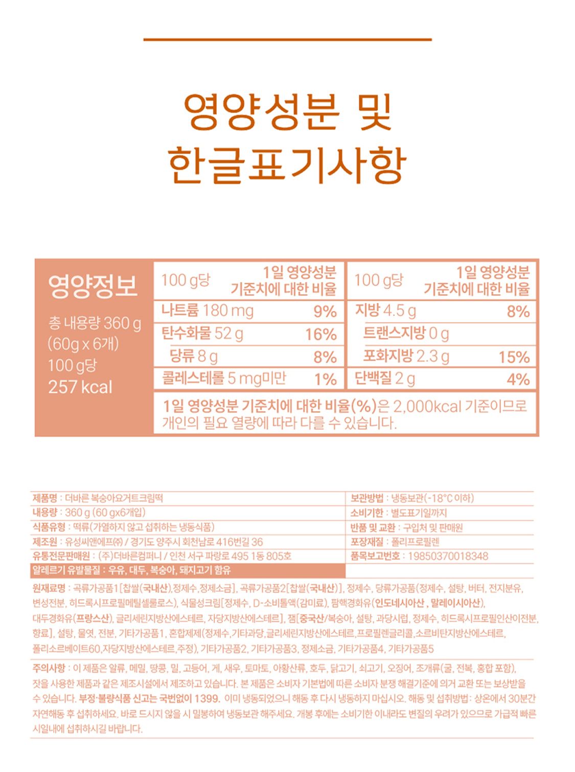 복숭아 요거트 크림떡 360g