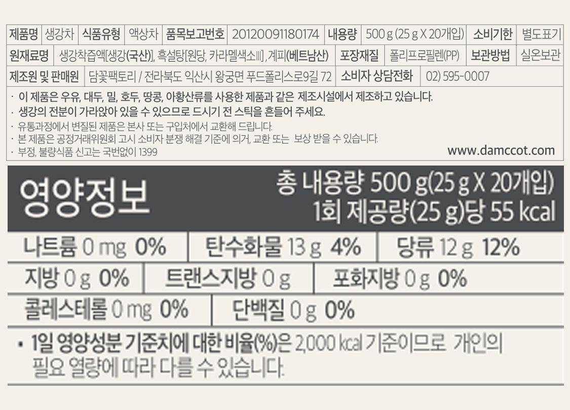 설탕에 절여낸 생강청과는 차원이 다른 국산 생강을 착즙해 만들어 더욱 진한 맛