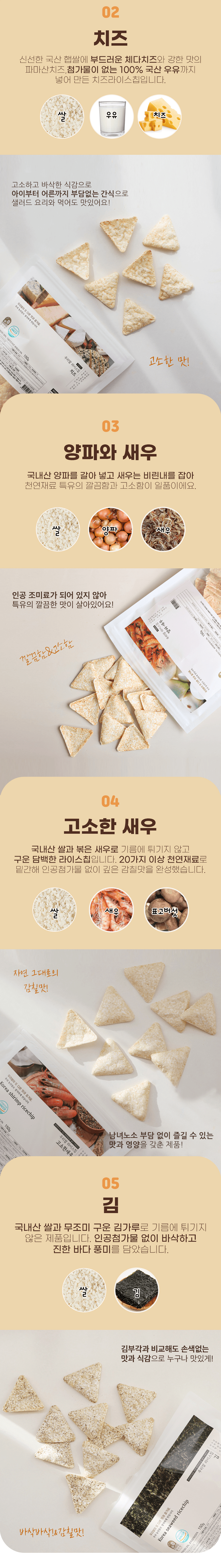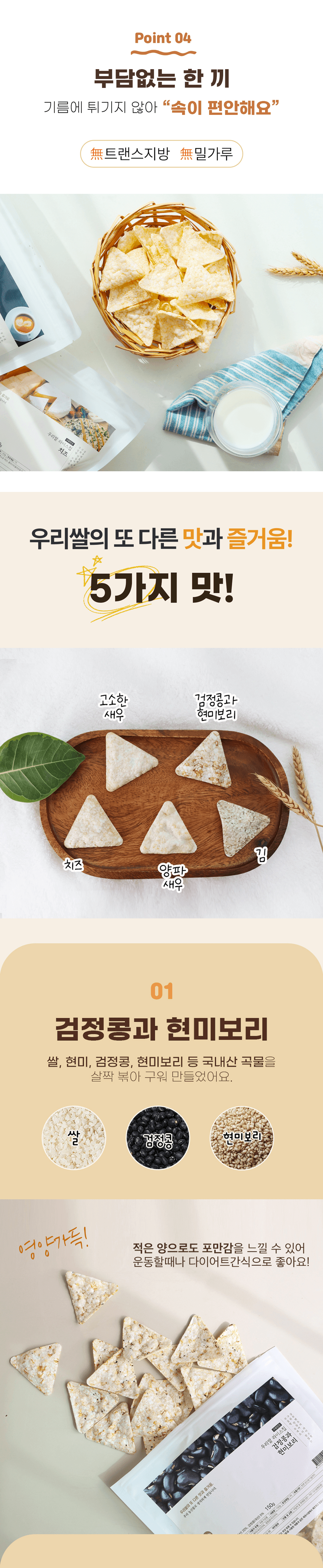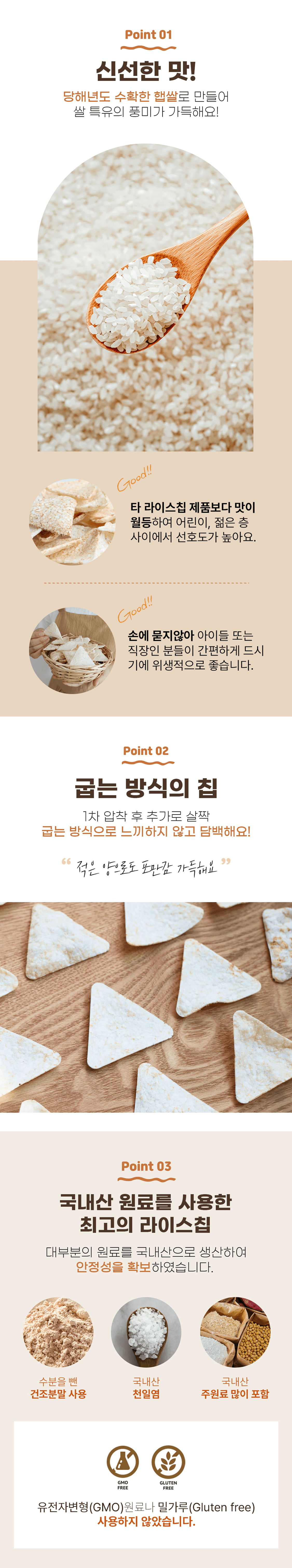 100% 국내산 햅쌀 사용! 기름에 튀기지 않아 담백하고 속이 편안한 맛