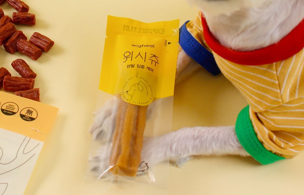 딱딱한 개껌을 먹다 이빨을 잃은 10살 반려견을 위해 한의사, 수의사 형제가 함께 만드는 위그힐의 간식을 소개할게요. 덴탈 케어에 도움을 주는 위시츄는 딱딱하고 씹기 힘든 일반 껌과 달리 손으로 쉽게 부러뜨릴 수 있을 만큼 유연하답니다.