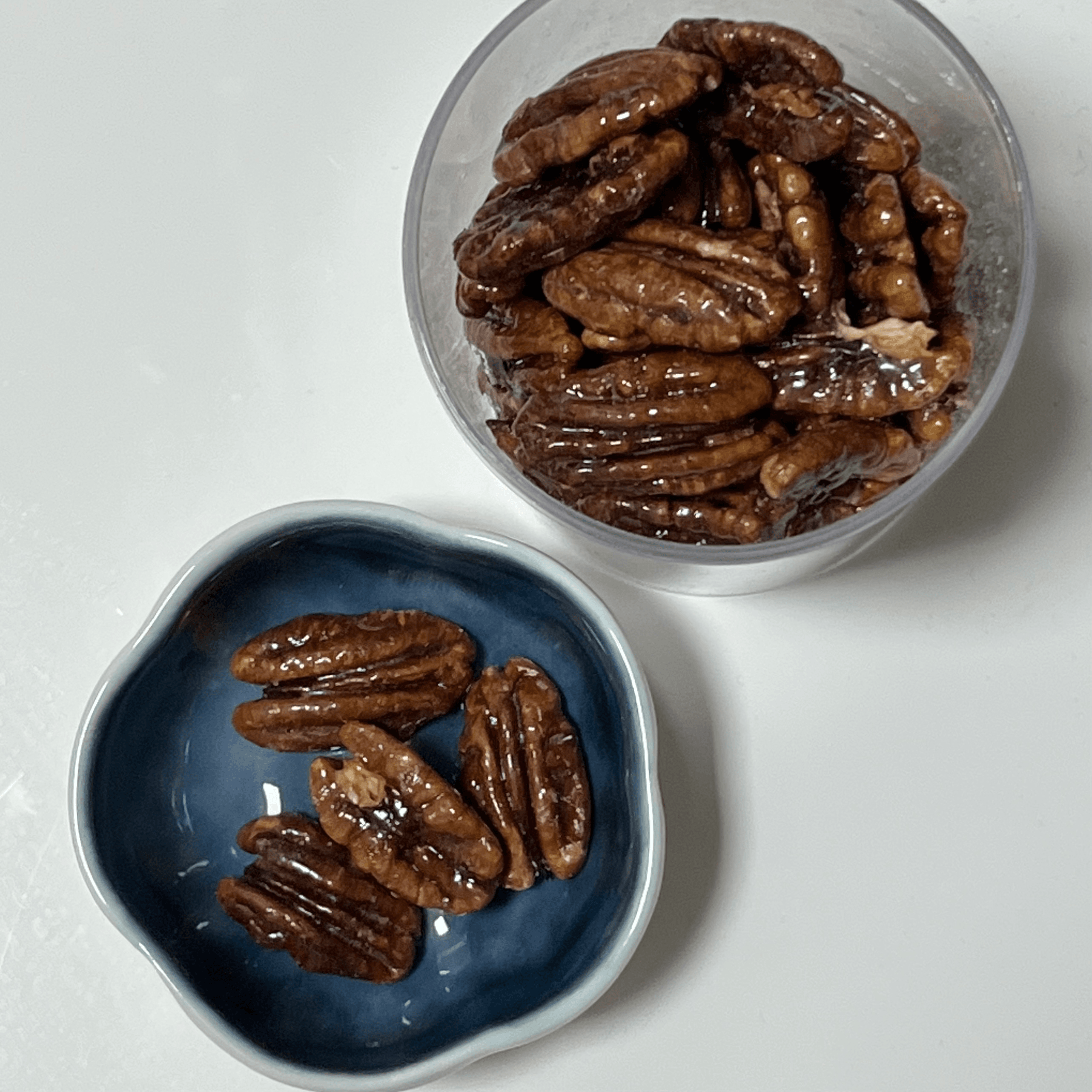 - 고급 견과인 피칸에 비정제 사탕수수 원당과 시나몬 파우더를 입혔어요.