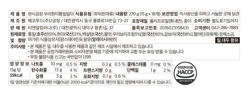 우리현미통밀말이 1박스 18개입ㅣ가볍지만 든든한 건강 간식