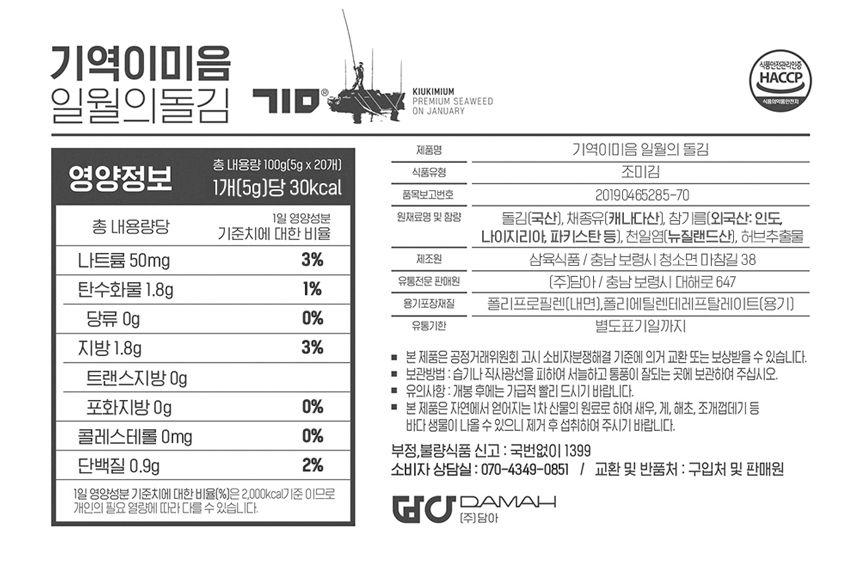 남해 청정지역에서 양식한 그해 초반의 원초를 영하 18도인 최적의 온도로 저장, 보관합니다. 항상 최고 품질의 김을 생산하고 관리하는 일월의 돌김은 두꺼운 돌김 원초를 사용하여 씹는 맛이 일품이에요. 또한 나트륨과 기름 함량을 줄여 짜지 않아 남녀노소 누구나 밥반찬으로 즐길 수 있어요.