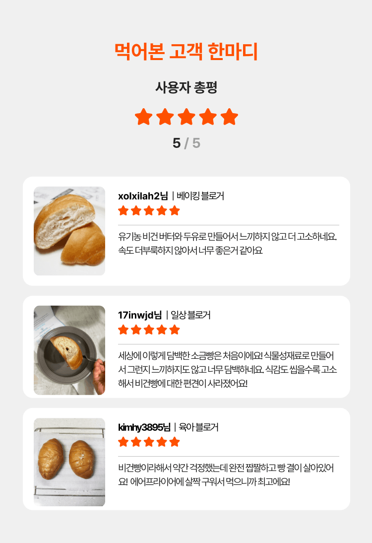 버터와 계란, 우유를 넣지 않고 유기농 비건 버터와 두유를 더해 느끼하지 않고 비건 버터만의 고소한 풍미와 담백함을 잡은 소소한 소금빵입니다.