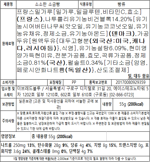 [서울 구로 문동진] 더브레드블루 소소한 소금빵 1개 55g