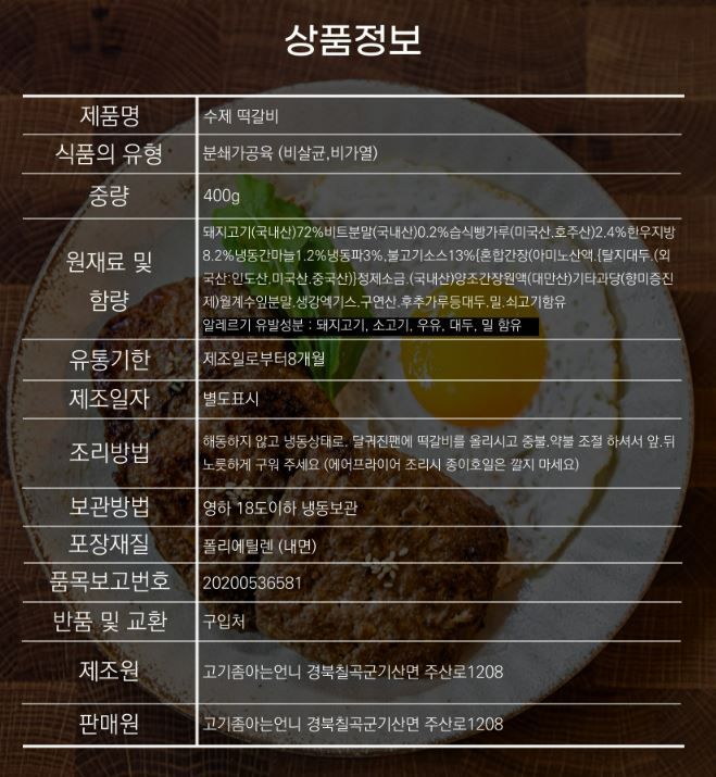 국내산 돼지고기로 만든 고기 좀 아는 언니의 한돈 떡갈비입니다. 정성스럽게 다진 고기를 최소한으로 양념한 뒤 여러 번 치대어 만들었어요. 밀가루나 전분 대신 습식 빵가루를 입혀 구웠기 때문에 딱딱하게 굳지 않고 부드럽게 즐길 수 있어요. 좋은 재료를 사용해 수제로 만들었으니 아이들 반찬으로 주기 제격일 거예요.