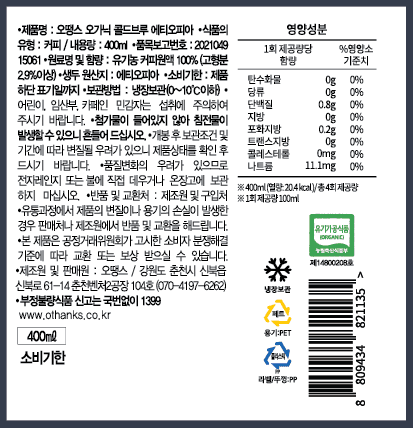 유기농 원두만으로 만든 커피