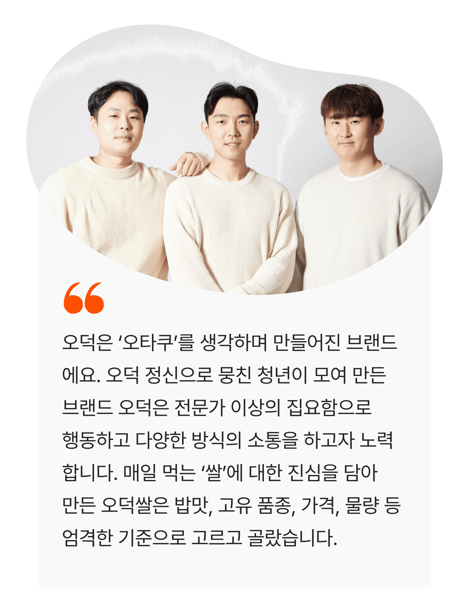 단백질과 아밀로스는 밥맛을 좌우하는 결정적 요소에요. 단백질이 오버되면 딱딱한 밥이 되고, 아밀로스가 오버되면 푸석한 밥이 됩니다. 오덕쌀의 부드러운 밥맛의 비결은 여기에 있어요. 오덕쌀은 바로 먹어도, 식어도 맛있는 밥을 위해 새로운 재배 방법을 연구해 부드러운 식감의 찬들미를 개발했습니다.