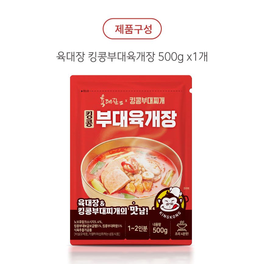 한식 브랜드의 자존심 ‘육대장’과 배부름의 즐거움, ‘킹콩부대찌개’ 두 브랜드가 만났어요. 두 메뉴를 대표하는 브랜드가 만나 더욱 더 맛있어졌어요. 전통 가마솥 방식으로 끓여낸 사골육수와 육대장만의 비법 양념으로 맛을 낸 얼큰한 국물로 속까지 든든하게 채워보세요.