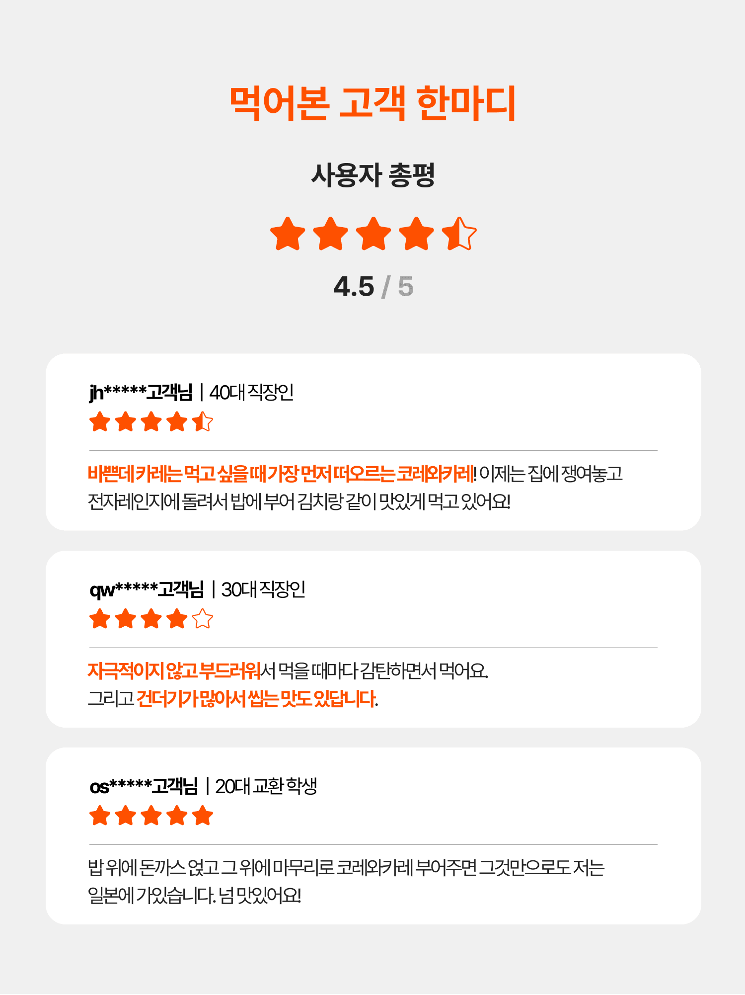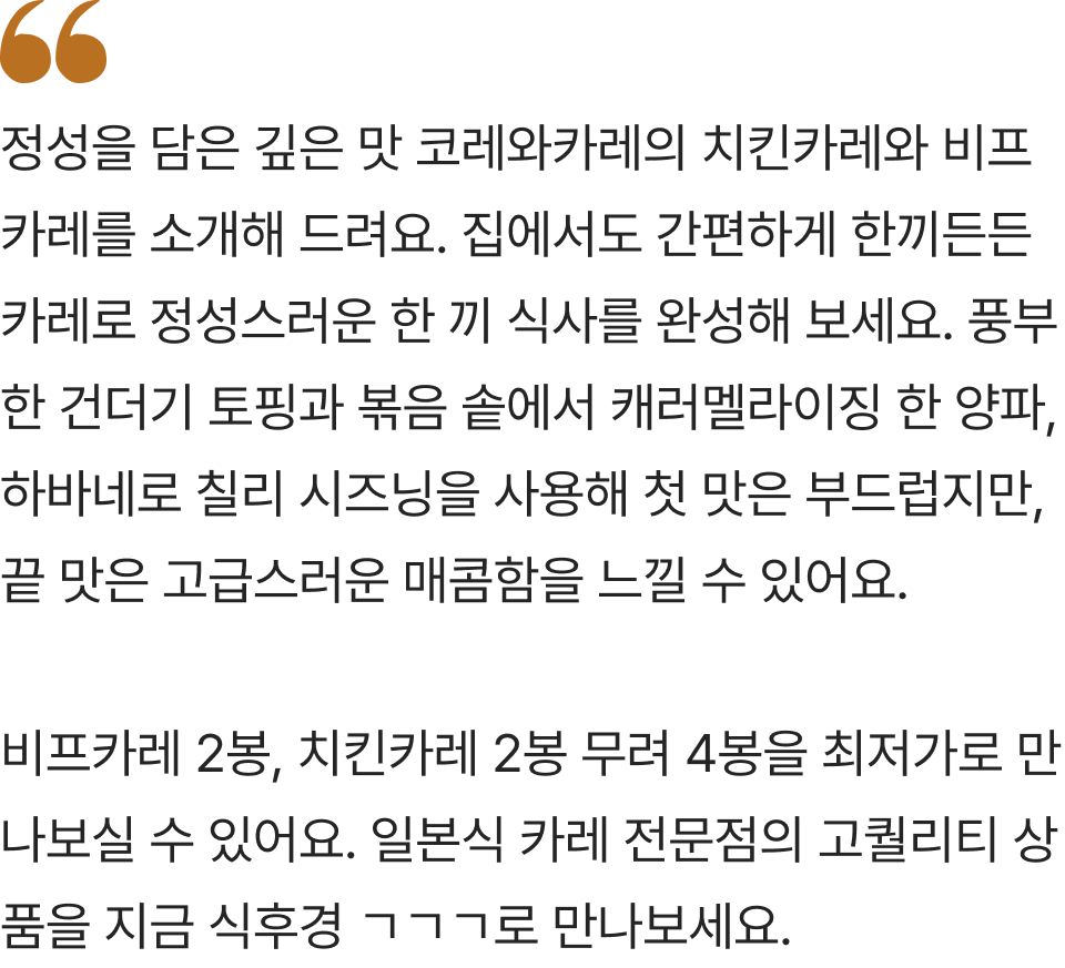 풍부한 토핑과 깊은 맛의 일본식 카레 전문점 코레와카레 치킨, 비프 총 4봉