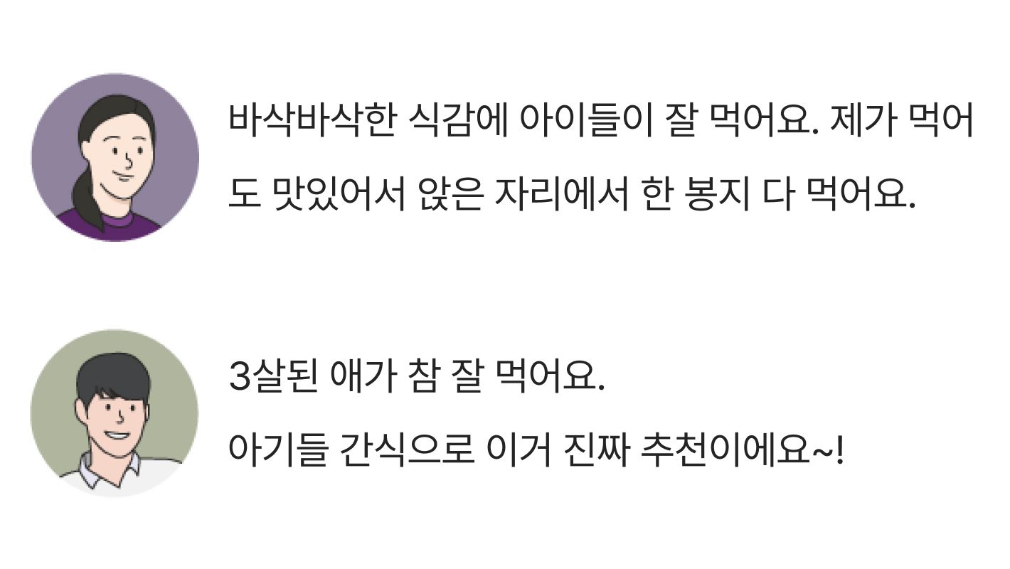 손으로 집어먹는 재미를 알아버린 우리 아이에게 딱 맞는 올바름의 팡과자를 소개할게요. 약 1.5cm의 적당한 크기로 아이가 손으로 집기에 쉬운 사이즈라 과자를 하나하나 집어먹으면서 집중력을 향상시키기 좋고, 소근육 발달에도 도움을 줄 수 있어요.
