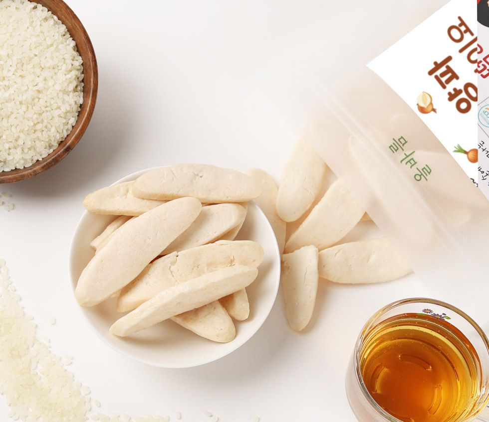 국내산 유기농 백미 99.5%가 함유되어 쌀과자의 고소하고 담백한 맛을 느낄 수 있어요.