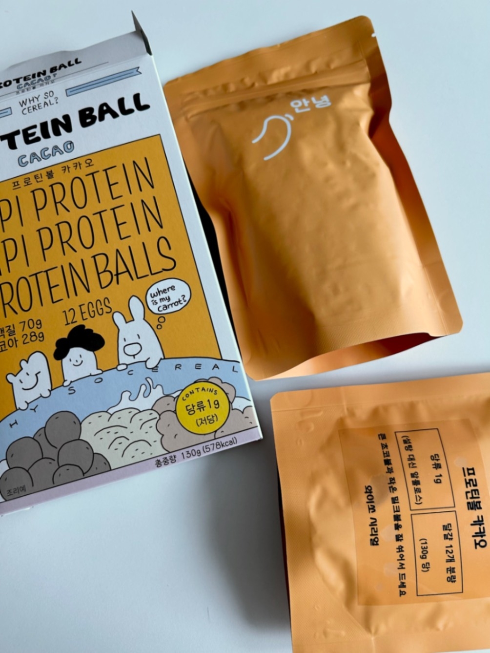 패키지가 너무 귀여워 예전부터 관심있었던 상품인데 식후경에서 구매할 수 있어서 너무 좋네요🤩 한 패키지에 두 봉이 들어있던데 상세페이지에는 그런 내용이 없어서 왜 두봉이 있는지 의문이 들었어요! 알고보니 1봉은 카카오 볼,1봉은 프로틴 볼이더라구요, 카카오 볼은 진한 카카오 맛에 그냥먹어도 고급진 맛이고, 프로틴 볼은 작은 알갱이 모양에 아무맛도 안 났어요 🥲 그래도 건강을 생각해서 잘 먹을 것 같아요!!