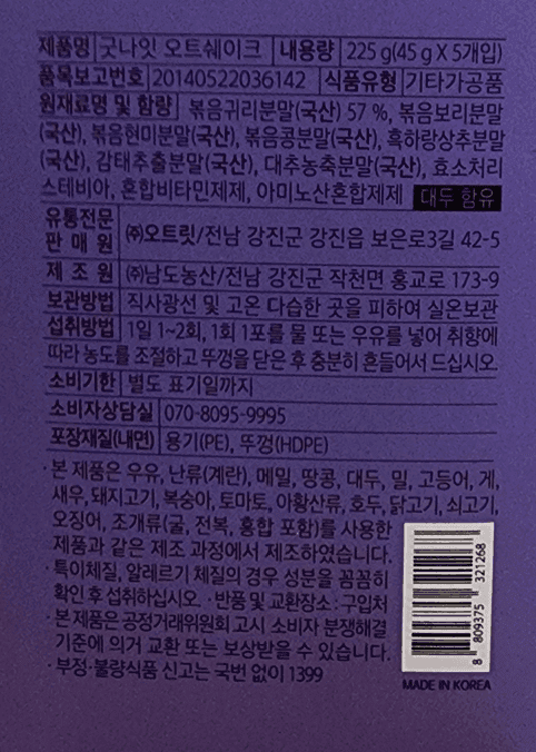 굿나잇 오트쉐이크 5개입