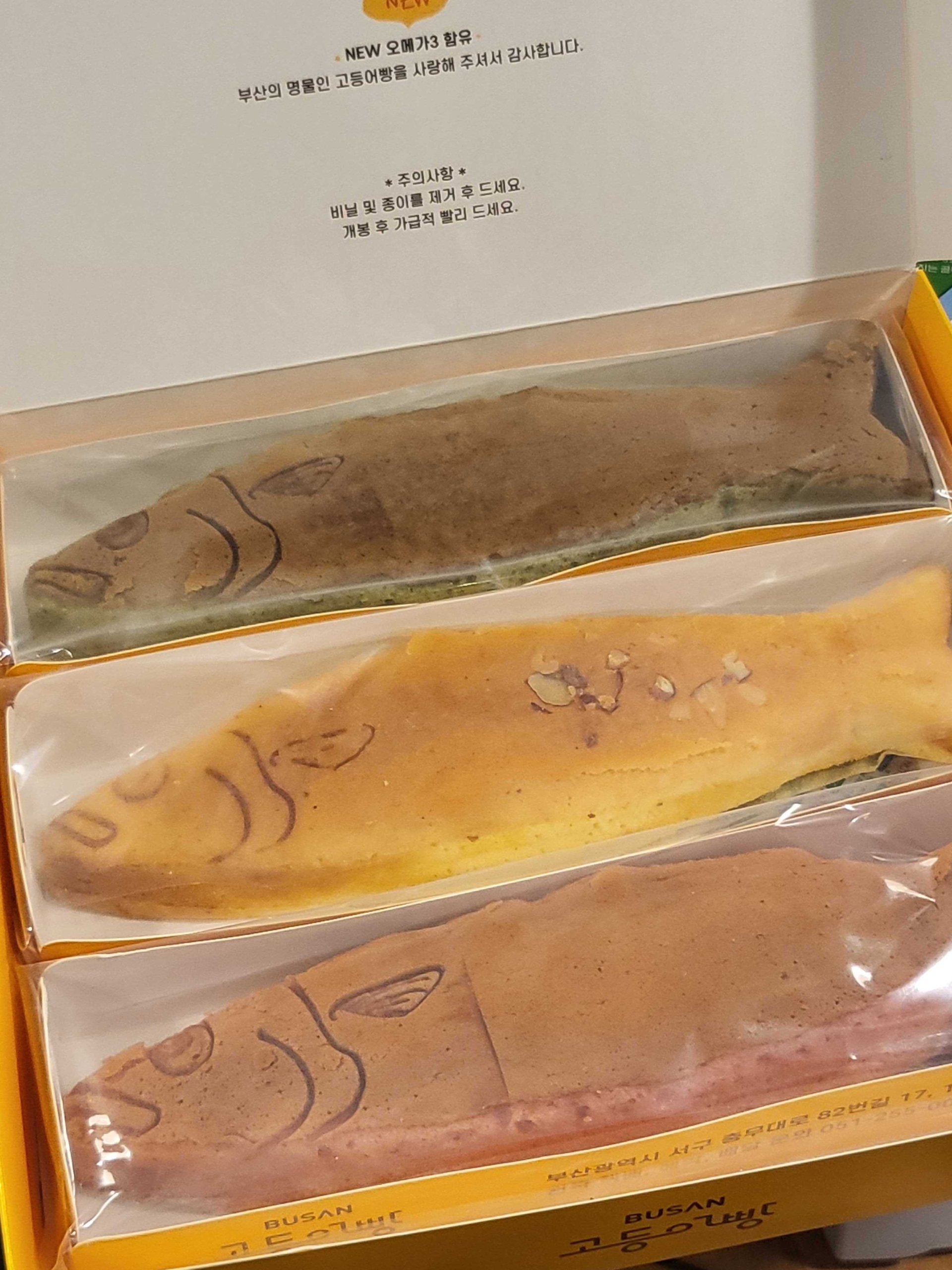 식감은 퐁실퐁실한 빵 느낌이었어요. 고도리빵은 마들렌과 비슷한 맛이었고 고등어빵은 카스테라와 스폰지케이크 중간맛..?이었어요