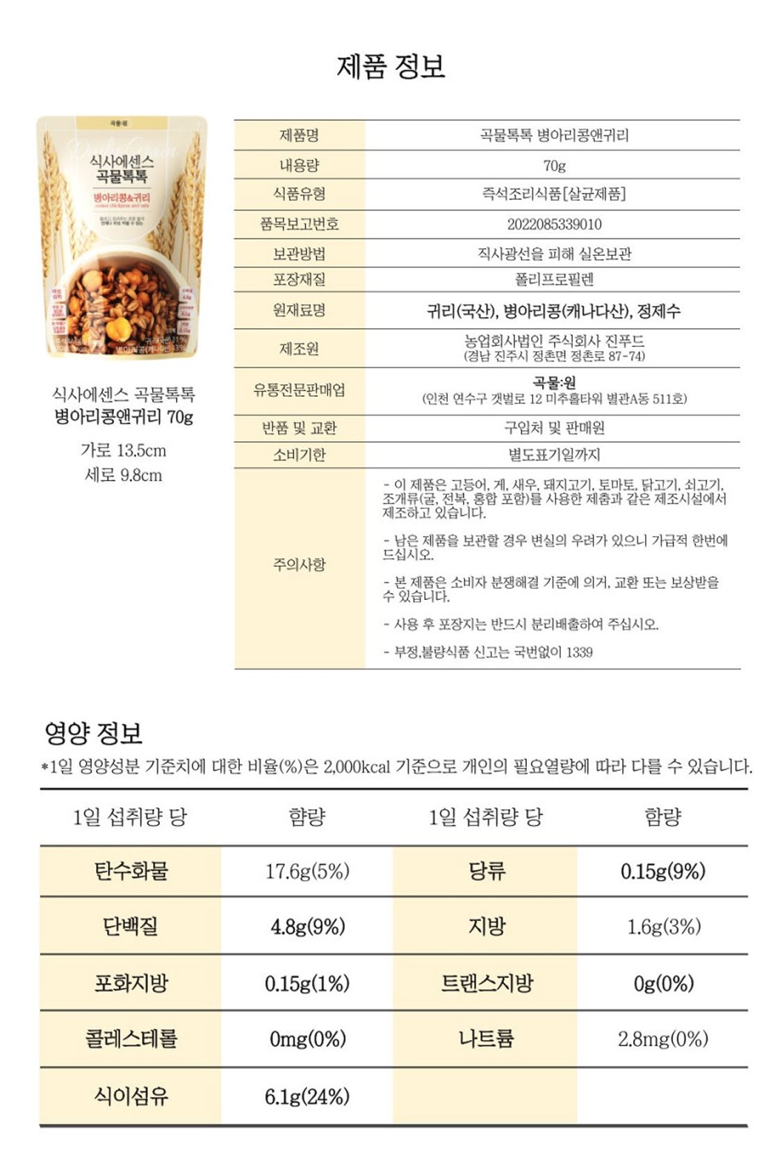 곡물톡톡 병아리콩앤귀리 70g