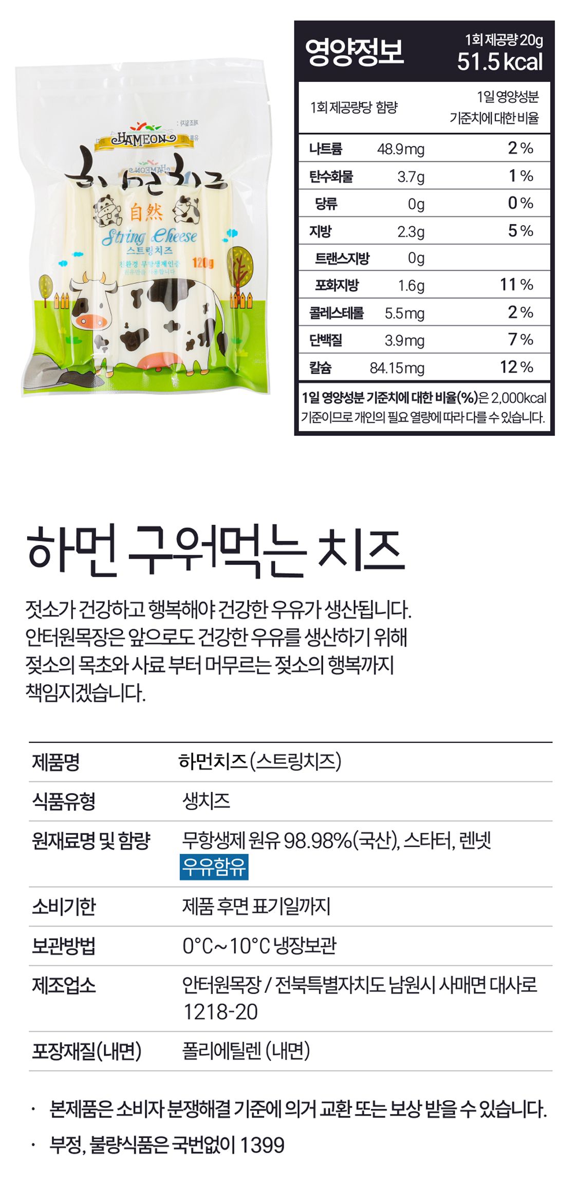 하먼 스트링 치즈 120g