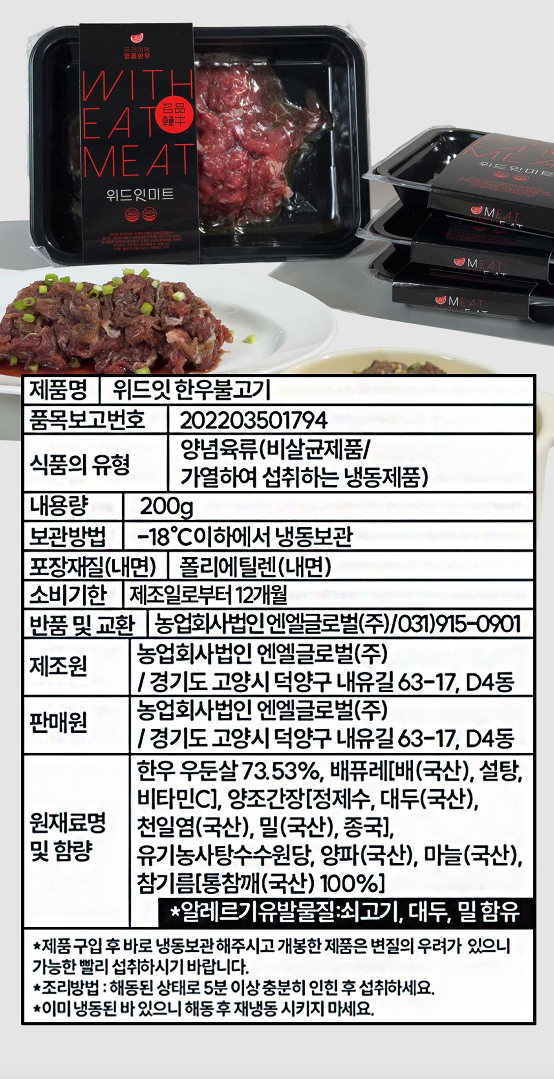 한우와 국산 양념을 사용한 불고기