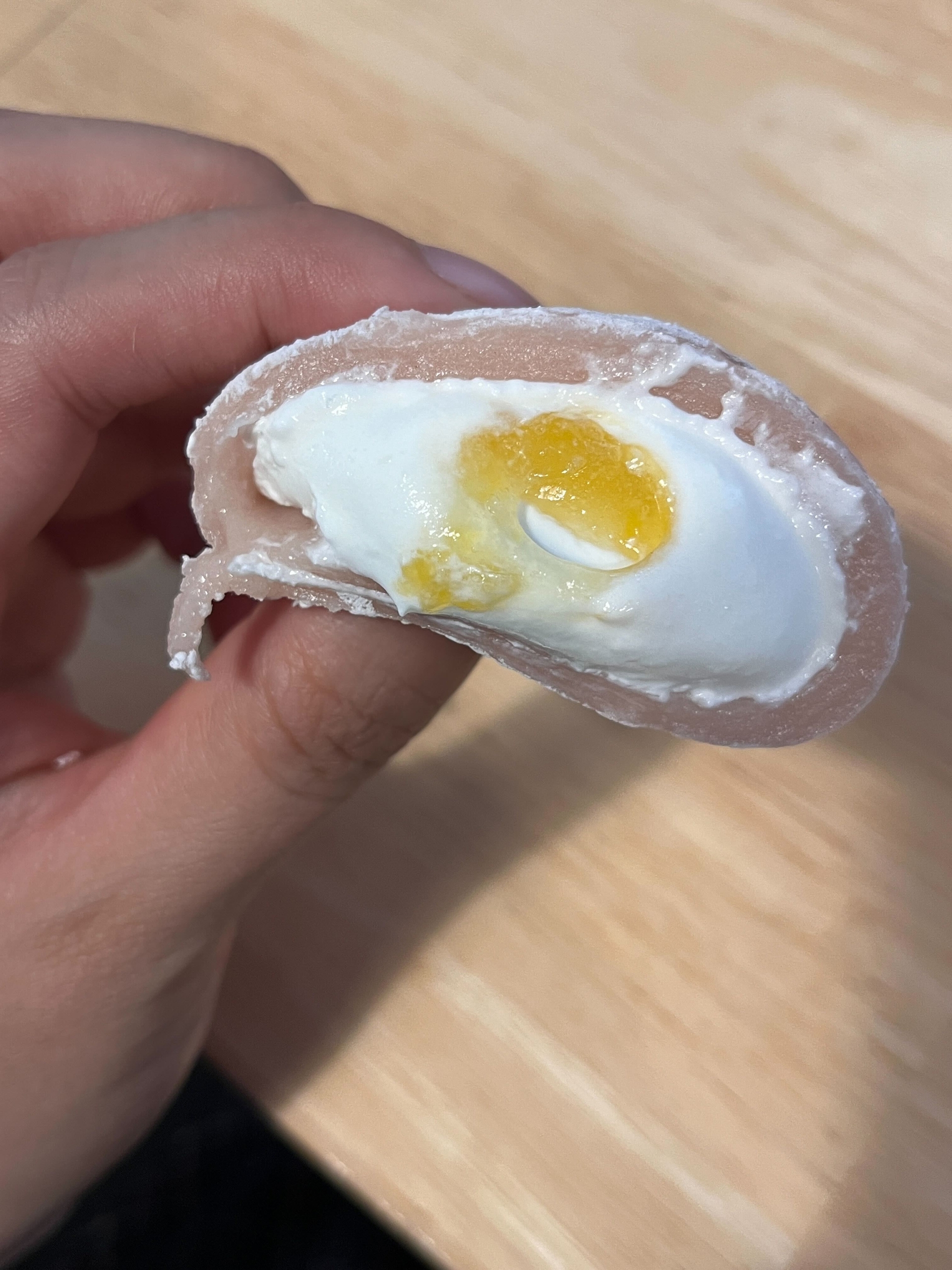 겁나 맛잇음 먹으면서 느낀건 찹쌀떡 아이스크림 같아서 더 맛있음, 안에 복숭아 잼(?) 같은게 쥬루륵 나온게 미폇음