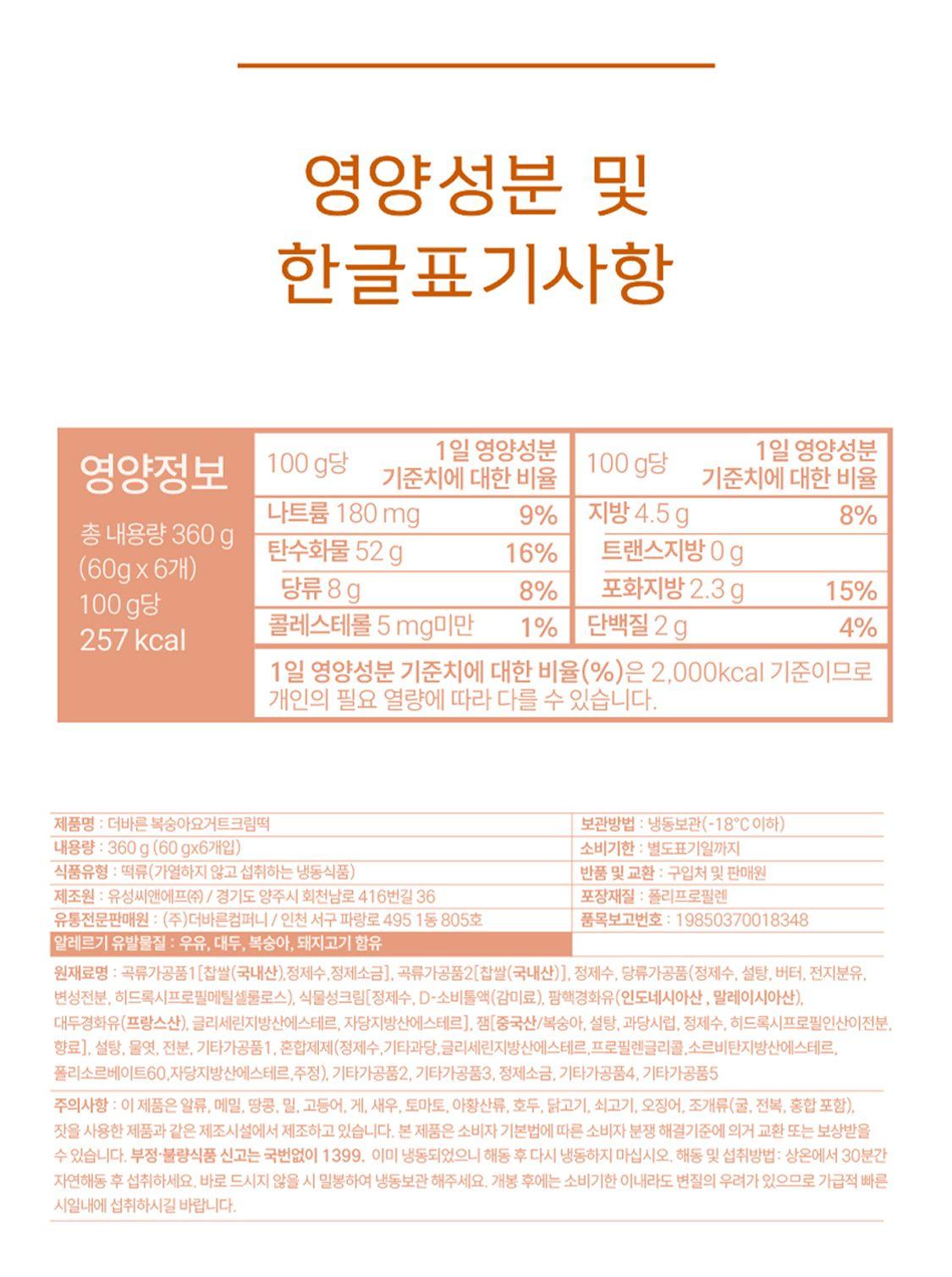 [더바른떡] 복숭아 요거트 크림떡 360g