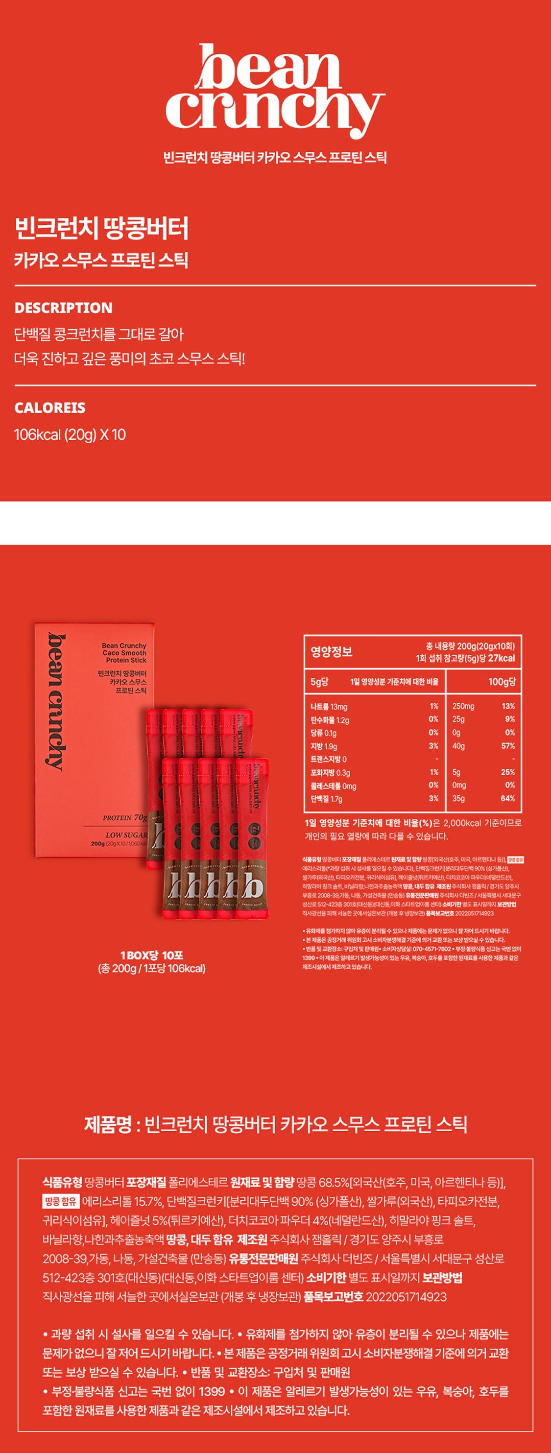 땅콩버터 카카오 프로틴 스틱 10개입