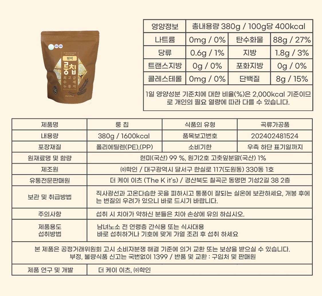 국산현미로 즐기는 대용량 누룽지