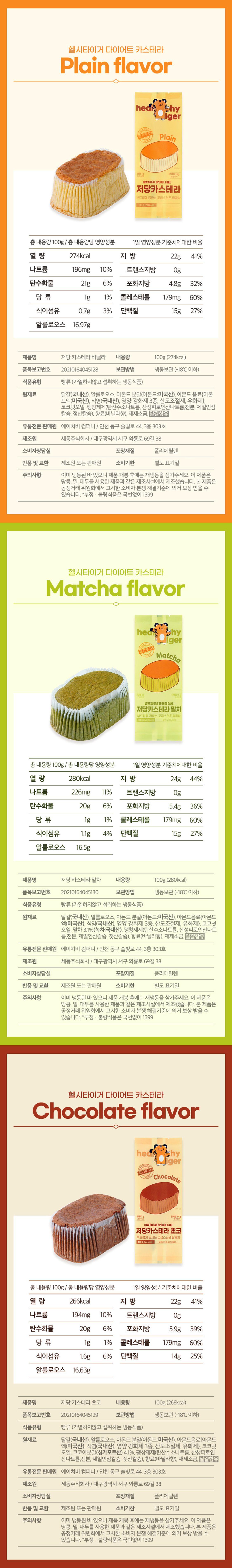 저당 카스테라100g 3종(플레인/말차/초코)
