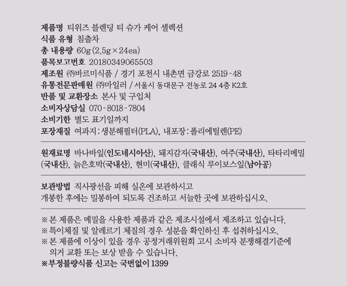 당분케어까지 확실한 무카페인 블렌딩 티