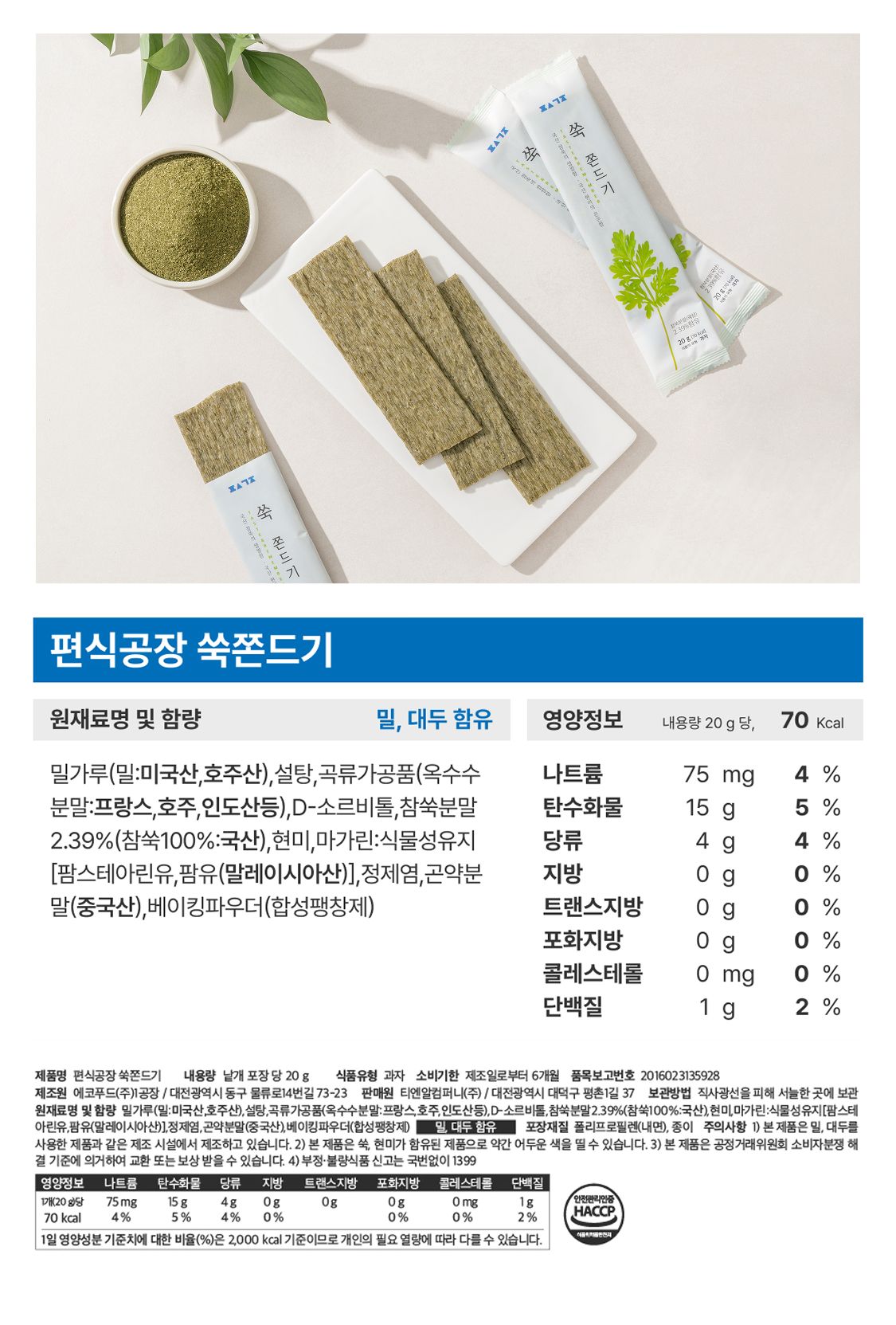국산 참쑥 사용! 가벼운 칼로리로 부담없는 간식