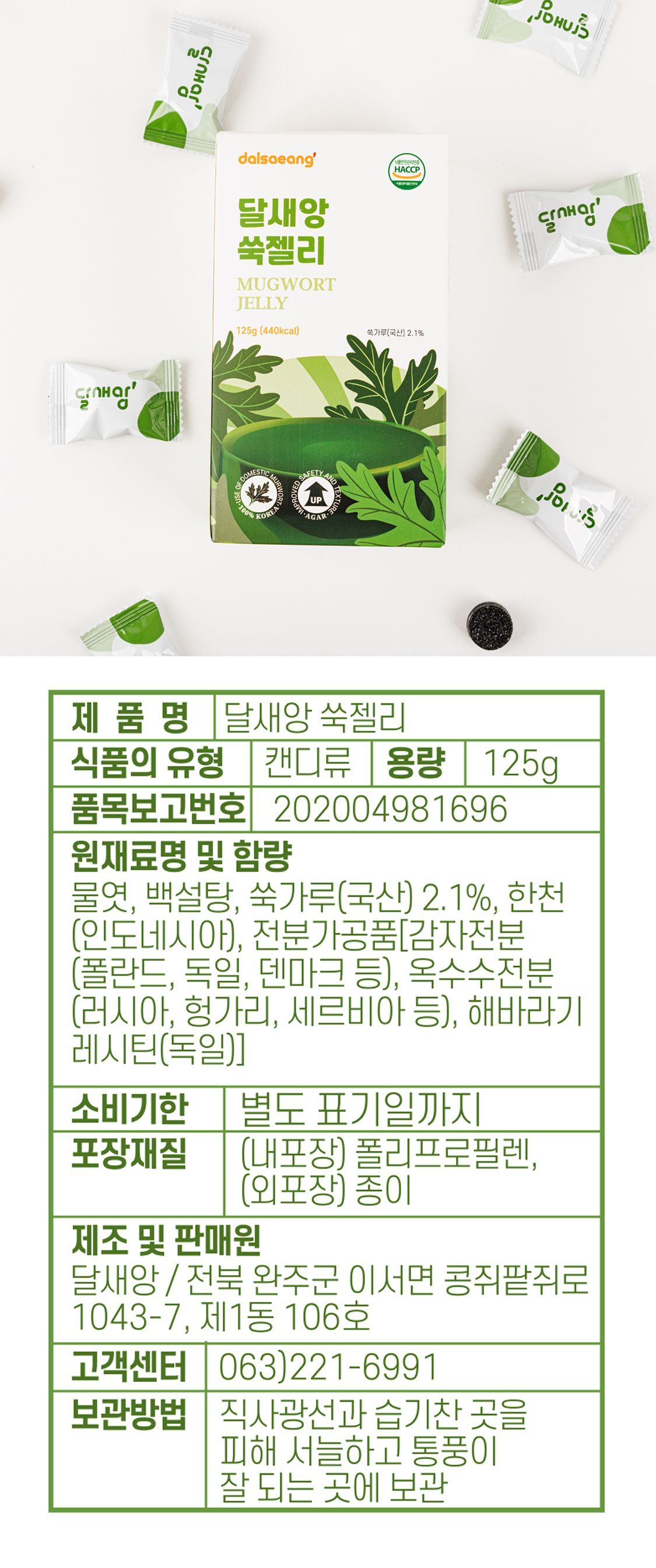 100% 국산 쑥과 식물성 한천으로 만들어 향긋함이 매력적인 젤리