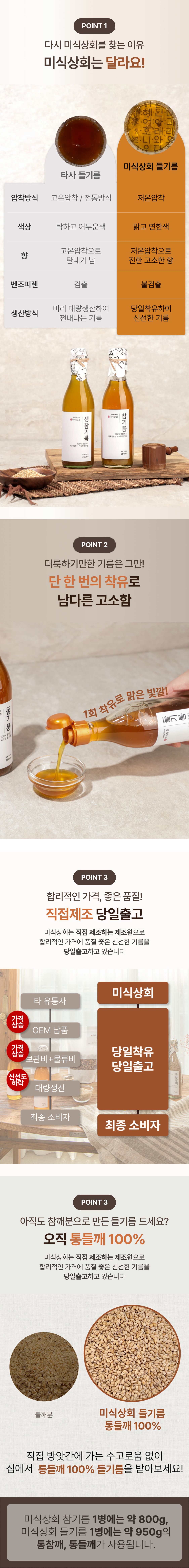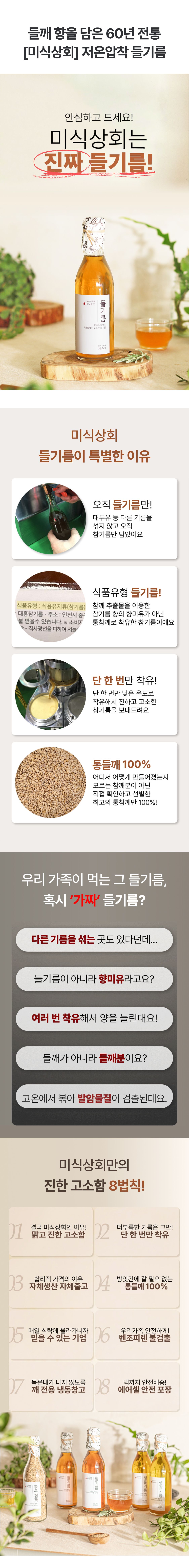 100% 통들깨를 저온압착해 진하고 고소한 향이 일품인 '진짜' 들기름