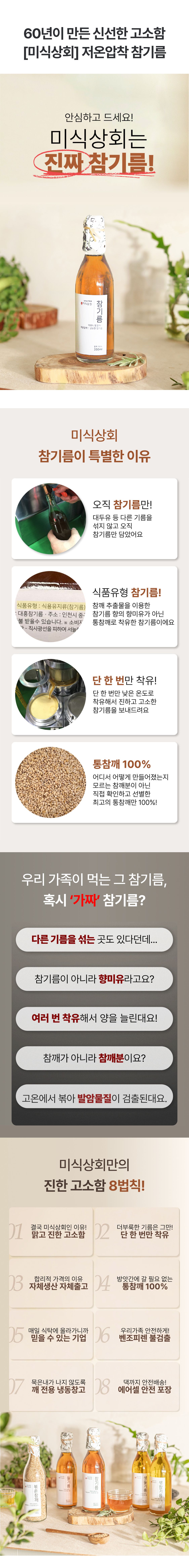 100% 통참깨를 저온압착해 진하고 고소한 향이 일품인 '진짜' 참기름
