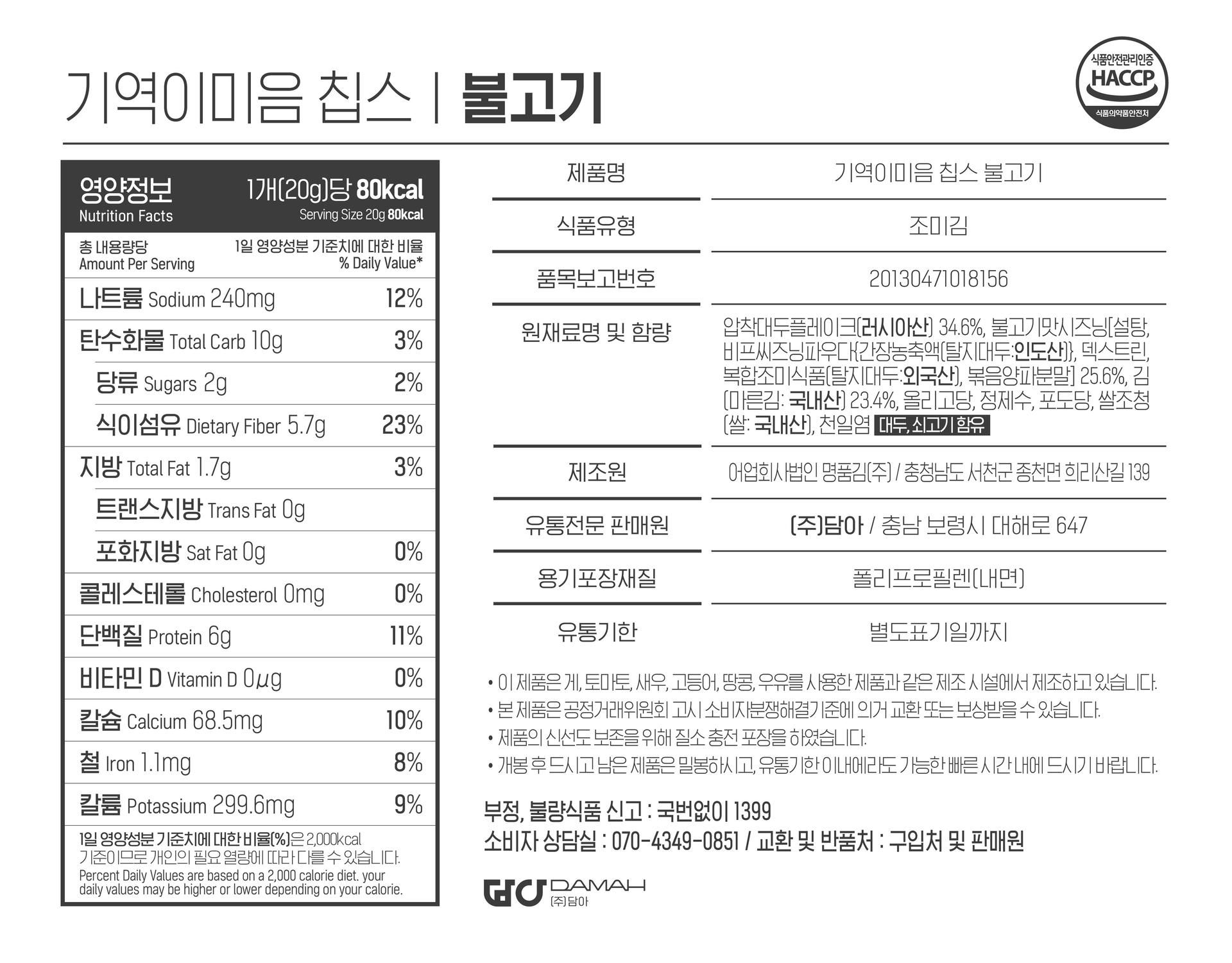 불고기칩스 : 대두 플레이크와 달콤 짭짤한 불고기맛