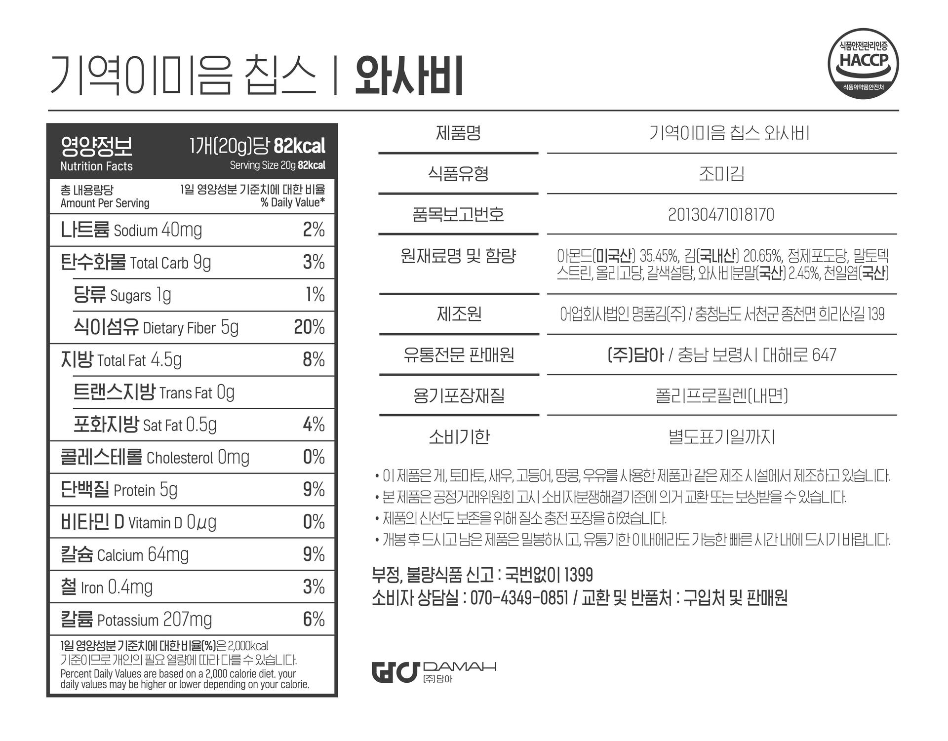 와사비칩스 : 고소한 아몬드와 톡 쏘는 와사비 맛