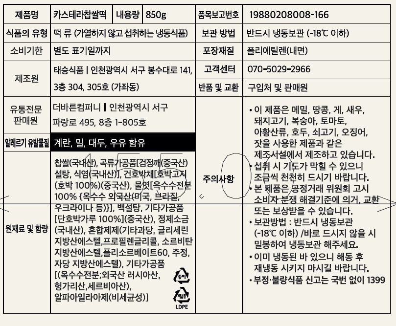 카스테라 찹쌀떡 850g (15개입)