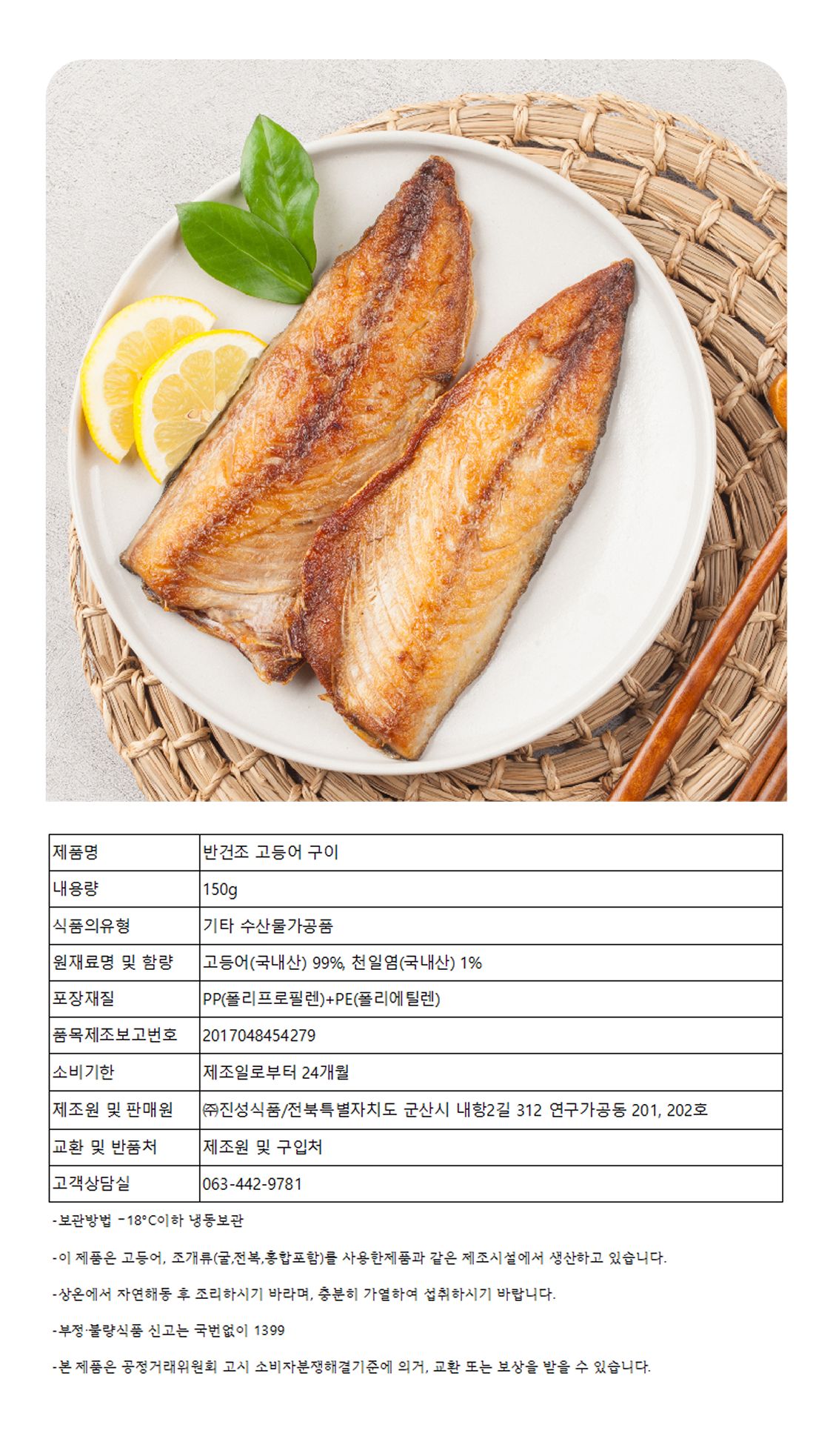 반건조 고등어구이 150g
